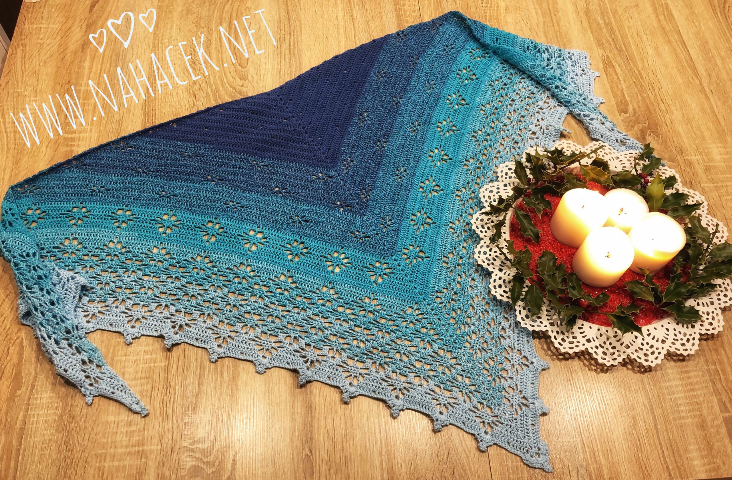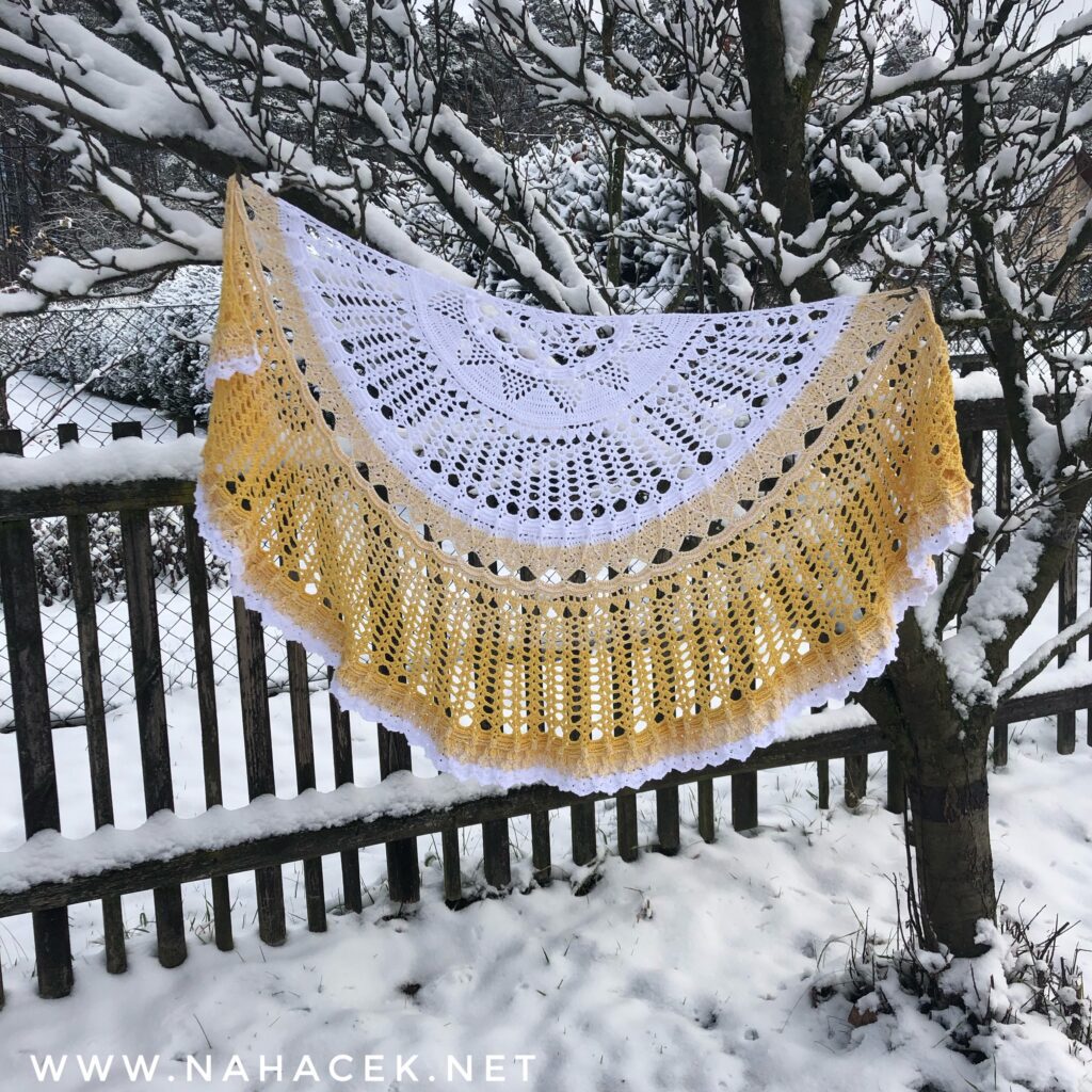 Háčkujeme úplně nový šátek, který jsem nikomu (až na pár výjimek 😇) neukázala. Takže nikdo dopředu netuší, jaký šátek vznikne, jak obtížný bude atd… Prozradím vždy jen naprosté minimum.